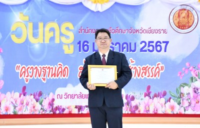 วันอังคารที่ 16 มกราคม 2567 ดร. ศรากร บุญปถัมภ์ ผู้อำนวยการ วิทยาลัยเทคนิคเชียงราย ปฏิบัติหน้าที่ ผู้อำนวยการสำนักงานอาชีวศึกษาจังหวัดเชียงราย พร้อมด้วยคณะผู้บริหาร ครู และบุคลากรทางการศึกษา ของสถานศึกษาในสังกัดสำนักงานอาชีวศึกษาจังหวัดเชียงราย ร่วมพิธีการวันครู ในกิจกรรมงานวันครู ครั้งที่ 68 พ.ศ. 2567 ครูดีสอนดี ศิษย์ดีเรียนดี มีความสุข' ครูวางฐานคิด ส่งเสริมศิษย์สร้างสรรค์ ณ อาคารช่างยนต์ ชั้น 4 วิทยาลัยเทคนิคเชียงราย