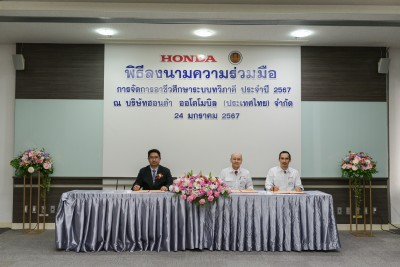วันพุธที่ 24 มกราคม 2567 ดร.ศรากร บุญปถัมภ์ ผู้อำนวยการวิทยาลัยเทคนิคเชียงราย เข้าร่วมการประชุมและลงนามบันทึกข้อตกลงแสดงความร่วมมือ (MOU) การจัดอาชีวศึกษาระบบทวิภาคี ประจำปี 2567 ณ บริษัท ฮอนด้า ออโตโมบิต (ประเทศไทย) จำกัด จังหวัดพระนครศรีอยุธยา