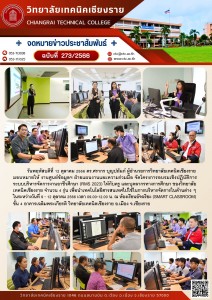 วันอังคารที่ 17 ตุลาคม 2566 ดร.ศรากร บุญปถัมภ์ ผู้อำนวยการวิทยาลัยเทคนิคเชียงราย ได้ตรวจเยี่ยม และนิเทศการจัดกิจกรรมการเรียนการสอนของแผนกต่าง ๆ รวมถึงสำรวจความพร้อมของครุภัณฑ์ที่ใช้ในการจัดการเรียนการสอน เพื่อให้นักเรียน นักศึกษา ได้ใช้ประโยชน์ในการเรียนรู้ได้มากที่สุด ณ วิทยาลัยเทคนิคเชียงราย