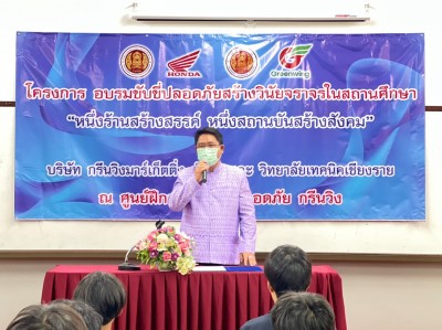 วันพฤหัสบดีที่ 6 กรกฎาคม 2566 เวลา 09.30 น. ดร.ศรากร บุญปถัมภ์ ผู้อำนวยการวิทยาลัยเทคนิคเชียงราย ให้เกียรติเป็นประธานในพิธีเปิดโครงการอบรมขับขี่ปลอดภัยสร้างวินัยจราจรในสถานศึกษา หนึ่งร้านสร้างสรรค์ หนึ่งสถาบันสร้างสังคม ประจำปี 2566 ร่วมกับบริษัท กรีนวิงมาร์เก็ตติ้ง จำกัด จ.เชียงราย เพื่อให้ผู้เข้าอบรมได้ความรู้ ทักษะการขับขี่ และการนำกฎจราจรไปใช้ในชีวิตประจำวัน ณ แผนกวิชาช่างยนต์ วิทยาลัยเทคนิคเชียงราย