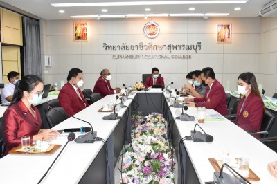 วันที่ 13 มิถุนายน 2565 วิทยาลัยอาชีวศึกษาสุพรรณบุรี โดย ดร.ศรากร บุญปถัมภ์ ผู้อำนวยการฯ ต้อนรับคณะกรรมการติดตามและประเมินผลการใช้หลักสูตรประกาศนียบัตรวิชาชีพ พุทธศักราช 2562 ประเภทวิชาคหกรรม สาขาวิชาอาหารและโภชนาการ ณ ห้องประชุมอุบล วิทยาลัยอาชีวศึกษาสุพรรณบุรี