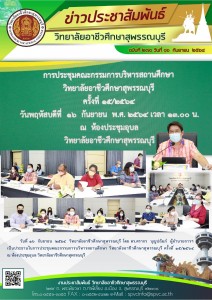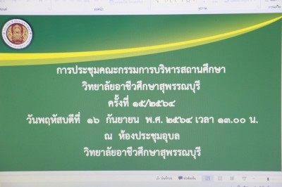 วันที่ 16 กันยายน 2564 วิทยาลัยอาชีวศึกษาสุพรรณบุรี โดย ดร.ศรากร บุญปถัมภ์ ผู้อำนวยการฯ เป็นประธานในการประชุมคณะกรรมการบริหารสถานศึกษา วิทยาลัยอาชีวศึกษาสุพรรณบุรี ครั้งที่ 15/2564 ณ ห้องประชุมอุบล วิทยาลัยอาชีวศึกษาสุพรรณบุรี