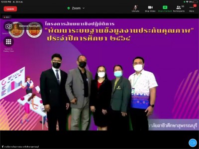 วันที่ 6-8 กันยายน 2564 วิทยาลัยอาชีวศึกษาสุพรรณบุรี โดยดร.ศรากร บุญปถัมภ์ ผู้อำนวยการฯ พร้อมด้วยรองผู้อำนวยการ 4 ฝ่าย เข้าร่วมการประชุมเชิงปฏิบัติการจัดทำมาตรฐานตัวชี้วัด และเกณฑ์การประเมินสถานศึกษา ตามโครงการพัฒนาศูนย์ความเป็นเลิศทางการอาชีวศึกษา (Excellent Center) สาขาวิชาเทคโนโลยีธุรกิจดิจิทัล ผ่านระบบออนไลน์ โปรแกรม ZOOM ณ ห้องประชุมอุบล วิทยาลัยอาชีวศึกษาสุพรรณบุรี