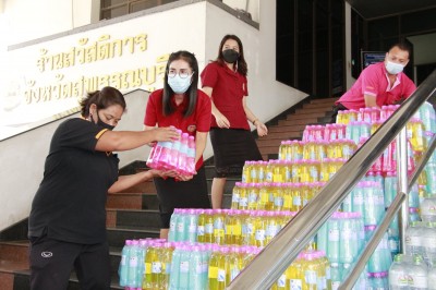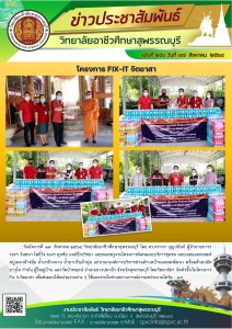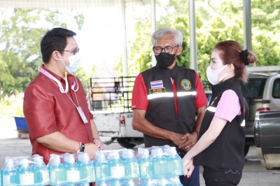 วันที่ 17 สิงหาคม 2564 วิทยาลัยอาชีวศึกษาสุพรรณบุรี โดย ดร.ศรากร บุญปถัมภ์ ผู้อำนวยการฯ นางวันทนา โพธิ์รัง รองฯ ฝ่ายพัฒนากิจการนักเรียนนักศึกษา นายศุภชัย นนท์ธีระวิชยา รองฯ ฝ่ายแผนงานและความร่วมมือ และคณะครู งานโครงการพิเศษและบริการชุมชน มอบเจลแอลกอฮอล์ สบู่เหลวล้างมือ น้ำยาล้างจาน และน้ำยาปรับผ้านุ่ม ตามโครงการ Fix it-จิตอาสา เพื่อส่งมอบให้หน่วยงานต่าง ๆ ใช้แจกจ่ายในช่วงสถานการณ์การแพร่ระบาดโควิด-19 แก่นายกองค์การบริหารส่วนตำบลบ้านแหลมพัฒนา พร้อมด้วยปลัดอาวุโส กำนัน ผู้ใหญ่บ้าน และวัดป่าพฤกษ์ อำเภอบางปลาม้า จังหวัดสุพรรณบุรี