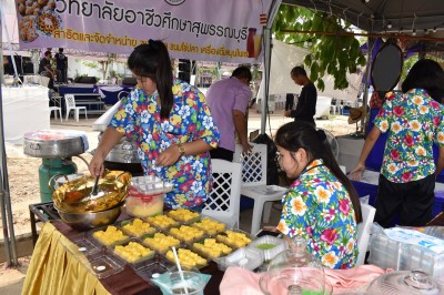 วิทยาลัยอาชีวศึกษาสุพรรณบุรี โดย ดร.ศรากร บุญปถัมภ์ ผู้อำนวยการฯ มอบหมายให้ รองฯ ภานุพันธ์ พันธนิตย์ เข้าร่วมงานโครงการเนื่องในวันอนุรักษ์มรดกไทย ปี 2564 กิจกรรม 'ฟังลูกทุ่ง นุ่งผ้าลาย สไตล์สุพรรณ' Suphanburi Music Craft & Folk &Arts Festival ระหว่างวันที่ 1-2 เมษายน 2564 ณ พิพิธภัณฑ์สถานแห่งชาติสุพรรณบุรี ลานสังคีตศาลา และ บริเวณด้านข้างโรงละครแห่งชาติ ภาคตะวันตก จังหวัดสุพรรณบุรี และ ให้แผนกวิชาคหกรรมศาสตร์ บริการจับจีบผ้า จัดสถานที่ จัดโต๊ะหมู่บูชา พานพุ่ม กรวยดอกไม้ เพื่อเทิดพระเกียรติสมเด็จพระกนิษฐาธิราชเจ้า กรมสมเด็จพระเทพรัตนราชสุดาฯ สยามบรมราชกุมารี และ มอบหมายให้คุณครูสมภพ อุตสาหะ พร้อมด้วย คณะครูแผนกวิชาอาหารและโภชนาการ ร่วมสาธิตอาหารไทยในวรรณคดี โดยนักเรียน นักศึกษาสาขาวิชาอาหารและโภชนาการ ได้แก่ ขนมช่อม่วง และขนมลูกชุบ ซึ่งเป็นขนมที่มีความสวยงาม รสชาติอร่อย นอกจากนี้ยังจำหน่ายขนมไข่ปลา ขนมตาล และเครื่องดื่มสมุนไพร เพื่อบูรณาการจัดการเรียนการสอนให้ผู้เรียนมีทักษะและประสบการณ์ในสถานการณ์จริง