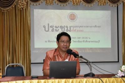 วันที่ 8 เมษายน 2564 วิทยาลัยอาชีวศึกษาสุพรรณบุรี โดย ดร.ศรากร บุญปถัมภ์ ผู้อำนวยการฯ รองฯ ภานุพันธ์ พันธนิตย์ และรองฯ วันทนา โพธิ์รัง ประชุมคณะครูและบุคลากรทางการศึกษา วิทยาลัยอาชีวศึกษาสุพรรณบุรี (ก่อนปิดภาคเรียนที่ 2 ปีการศึกษา 2563) ครั้งที่ 3 ปีการศึกษา 2563 และแสดงความยินดีกับคุณครูที่ได้รับคัดเลือกเป็นข้าราชการพลเรือนดีเด่น ของจังหวัดสุพรรณบุรี ประจำปี พ.ศ.2563 ณ ห้องสร้อยอินทนิล วิทยาลัยอาชีวศึกษาสุพรรณบุรี