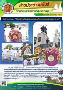 วันที่ 25 เมษายน 2564 สำนักงานคณะกรรมการการอาชีวศึกษามอบหมายให้ วิทยาลัยอาชีวศึกษาสุพรรณบุรี โดย ดร.ศรากร บุญปถัมภ์ ผู้อำนวยการฯ รองฯภานุพันธ์ พันธนิตย์ และคุณครูณัฐวรรธน์ ศิริเตชภัทร์ ร่วมพิธีวางพวงมาลา เพื่อถวายความจงรักภักดี และรำลึกถึงพระมหากรุณาธิคุณของพระองค์ เนื่องในวันคล้ายวันสวรรคตของสมเด็จพระนเรศวรมหาราช ณ พระบรมราชานุสรณ์ดอนเจดีย์ อำเภอดอนเจดีย์ จังหวัดสุพรรณบุรี
