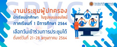 วันที่ 21 พฤษภาคม 2564 วิทยาลัยอาชีวศึกษาสุพรรณบุรี โดย ดร.ศรากร บุญปถัมภ์ ผู้อำนวยการฯ พร้อมด้วย รองผู้อำนวยการทั้ง 4 ฝ่าย และครู บุคลากรการศึกษา ของวิทยาลัยอาชีวศึกษาสุพรรณบุรี ถ่ายทอดกิจกรรมการประชุมผู้ปกครองของนักเรียน นักศึกษา ประจำภาคเรียนที่ 1 ปีการศึกษา 2564 ในรูปแบบ Online