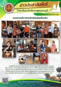 วันที่ 25 ธันวาคม 2563 วิทยาลัยอาชีวศึกษาสุพรรณบุรี โดยดร.ศรากร บุญปถัมภ์ ผู้อำนวยการฯ พร้อมด้วยรองผู้อำนวยการ และคณะครู เปิดร้านจำหน่าย ผลิตภัณฑ์ เค้กคุกกี้ ต้อนรับเทศกาลปีใหม่ 2564 บริเวณหน้าวิทยาลัยฯ โดยท่านผอ.ศิริ โพธินาม ร่วมแสดงความยินดี