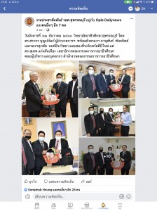 วันที่ 21 ธันวาคม 2563 วิทยาลัยอาชีวศึกษาสุพรรณบุรี โดย ดร.ศรากร บุญปถัมภ์ ผู้อำนวยการฯ พร้อมด้วยรองฯภานุพันธ์ พันธนิตย์ และคุณครูอภิรดี อามาตย์ทัศน์ เข้าพบและมอบของที่ระลึกแด่คุณระเบียบ เทพสุธา และมอบกระเช้าผลิตภัณฑ์คุกกี้อาชีวะ ผลงานจากนักเรียน นักศึกษา วิทยาลัยอาชีวศึกษาสุพรรณบุรีแด่ดร.สมจินต์ ชาญกระบี่ ผู้จัดการ อพท.7