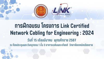 วันศุกร์ที่ 15 มีนาคม 2567 ดร.ศรากร บุญปถัมภ์ ผู้อำนวยการวิทยาลัยเทคนิคเชียงราย เป็นประธานเปิดการอบรม โครงการ LINK Certified Network Cabling for Engineering : 2024 โดยมี วิทยากรจากบริษัทอินเตอร์ลิ้งค์ คอมมิวนิเคชั่น จำกัด ณ ห้องประชุม ชั้น 3 อาคารอำนวยการ วิทยาลัยเทคนิคเชียงราย