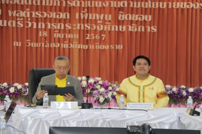 วันจันทร์ที่ 18 มีนาคม 2567 ดร.ศรากร บุญปถัมภ์ ผู้อำนวยการวิทยาลัยเทคนิคเชียงราย ปฏิบัติหน้าที่ ผู้อำนวยการสำนักงานอาชีวศึกษาจังหวัดเชียงราย เข้าร่วมประชุมรับนโยบายจาก พลตำรวจเอก เพิ่มพูน ชิดชอบ รัฐมนตรีว่าการกระทรวงศึกษาธิการ และ นายสุรศักดิ์ พันธ์เจริญวรกุล รัฐมนตรีช่วยว่าการกระทรวงศึกษาธิการ โดยได้เน้นย้ำให้ผู้บริหารและคณะครูจัดการเรียนการสอนและบริหารจัดการสถานศึกษาโดยยึดผลลัพธ์ผู้เรียนเป็นสำคัญ พัฒนาทักษะของผู้เรียนให้เป็นไปตามบริบทของสังคมในยุคปัจจุบัน เพื่อให้สอดคล้องกับนโยบายเรียนดี มีความสุข ณ ห้องประชุม วิทยาลัยอาชีวศึกษาเชียงราย อ.เมือง จ.เชียงราย